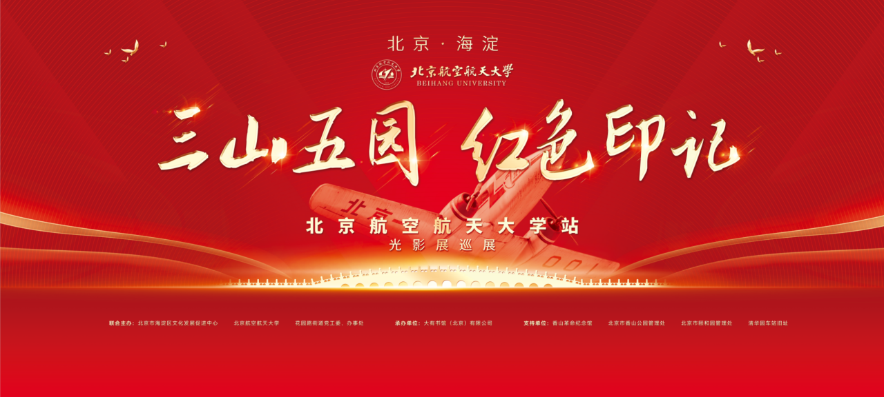 75年后的今天,為了更生動地弘揚海淀紅色文化品牌,拓寬傳播路徑,海淀區文化發展促進中心與北京航空航天大學以及花園路街道黨工委、辦事處合作開展“三山五園紅色印記”主題光影展巡展——北京航空航天大學站。