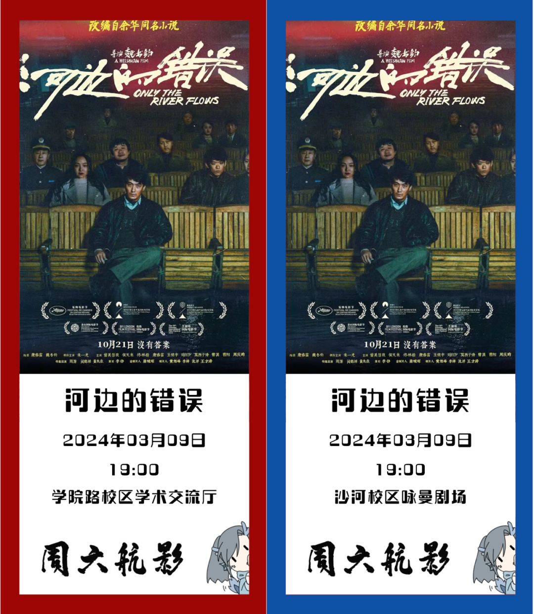 3月9日(周六)19:00,學(xué)院路校區(qū)學(xué)術(shù)交流廳、沙河校區(qū)詠曼劇場同步放映!