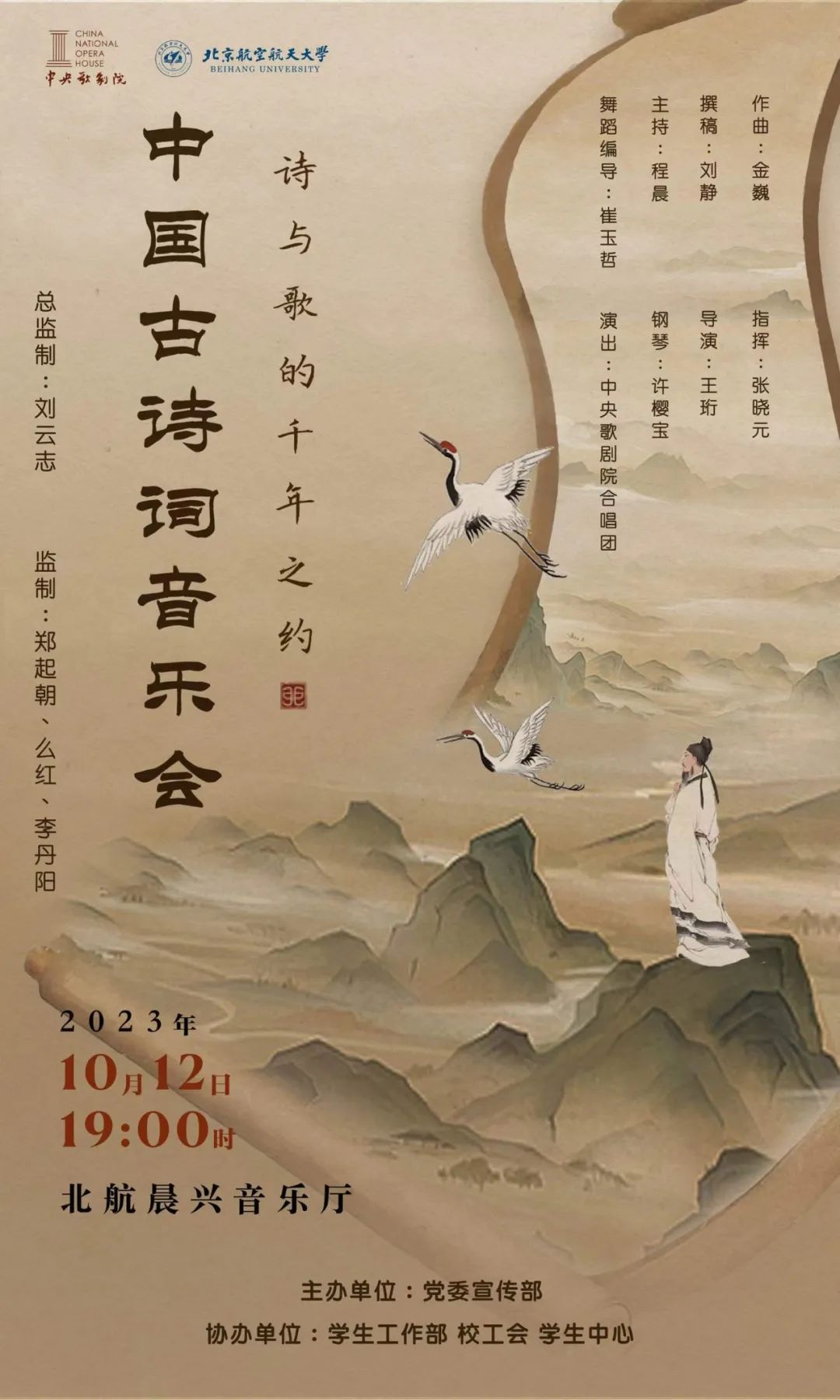 10月12日(周四)下午7:00于學院路校區晨興音樂廳,中央歌劇院將為大家傾情表演《中國古詩詞音樂會》。