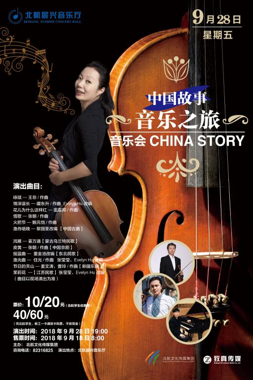 “中國故事音樂之旅”專場音樂會2015年在美國加州的一個文化藝術中心首演,受到歡迎,在國內一些城市持續演出了兩年,反響很好。當今很多年輕人已經不太了解中國傳統的音樂文化,希望能以音樂會的形式將中國文化傳承下去。音樂會有一些原創作品,中國音樂學院作曲系教授王非的《詠賦》,是他1985年為首屆藝術院校青少年大提琴比賽而創作的,旋律優美,富有詩意,講究文采、韻律,兼具詩歌和散文的美;張朝作曲的《情歌》,表達對家鄉的深情回憶以及對愛情的美好憧憬。鮑元愷的《火把節》,描繪了云南彝族火把節時載歌載舞的傳統習俗。其它作品還有張瑩瑩與美國作曲家Evelyn Hu合作將中國民歌《茉莉花》、弦樂四重奏《情深誼長》及歌曲《漁光曲》分別改編成大提琴獨奏曲。