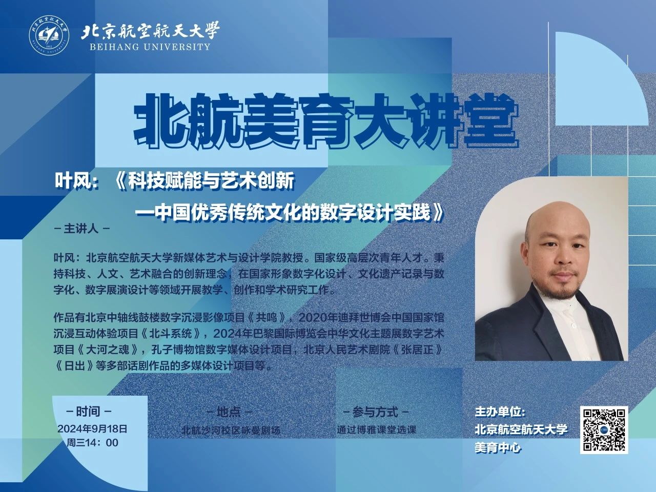 本次講座主要從三個方面探討科技與藝術的創新和創作關系:先進科技發展與文化藝術創新的美學關系;數字技術在中國優秀傳統文化傳承與展演設計中的實踐案例分享;科技與藝術融合創新的未來發展趨勢分析。