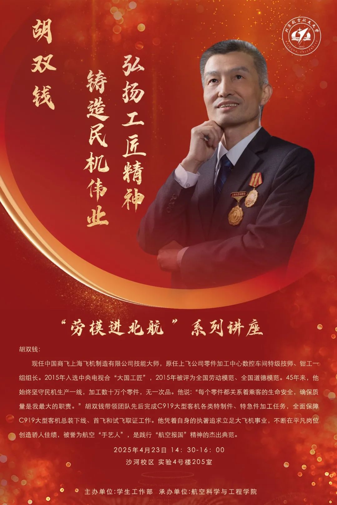 1980年,胡雙錢從5703廠技校畢業(yè)后進(jìn)入上飛,參與中國(guó)民用飛機(jī)“運(yùn)十”的研制。45年來(lái)他始終堅(jiān)守民機(jī)生產(chǎn)一線,加工數(shù)十萬(wàn)個(gè)零件,無(wú)一次品。他說(shuō):“每個(gè)零件都關(guān)系著乘客的生命安全,確保質(zhì)量是我最大的職責(zé)。”這種對(duì)工作的敬畏和對(duì)生命的尊重,讓胡雙錢在平凡的工作崗位上創(chuàng)造出了不平凡的成績(jī)。胡雙錢帶領(lǐng)團(tuán)隊(duì)先后完成C919大型客機(jī)各類特制件、特急件加工任務(wù),全面保障C919大型客機(jī)總裝下線、首飛和試飛取證工作。他憑著自身的執(zhí)著追求,立足大飛機(jī)事業(yè),不斷在平凡崗位創(chuàng)造驕人佳績(jī),被譽(yù)為航空“手藝人”。