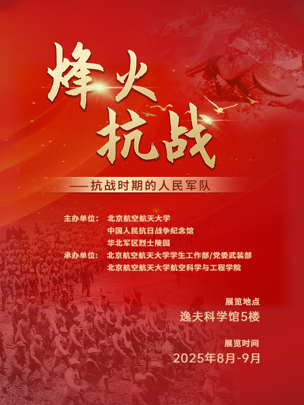 本次展覽《烽火抗戰——抗戰時期的人民軍隊》,由北京航空航天大學、中國人民抗日戰爭紀念館與華北軍區烈士陵園共同主辦,北京航空航天大學學生工作部/黨委武裝部和航空科學與工程學院承辦,旨在弘揚愛國主義精神,讓后人銘記抗戰時期人民軍隊的英勇事跡。