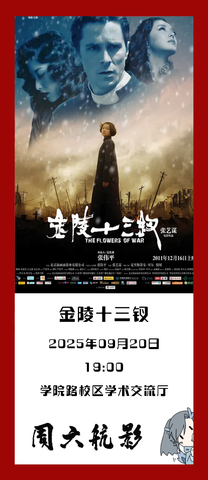「周六航影」第二周讓我們一起走進《金陵十三釵》看硝煙彌漫的南京城里不同身份的人如何在絕境中抉擇,感受人性微光如何穿透黑暗。