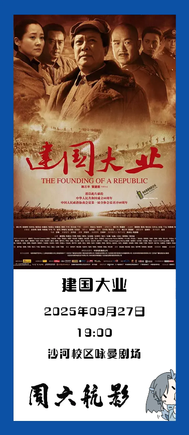 9月27日(周六)19:00學院路校區學術交流廳,沙河校區詠曼劇場,杭州校園圖書館1001報告廳同步放映!