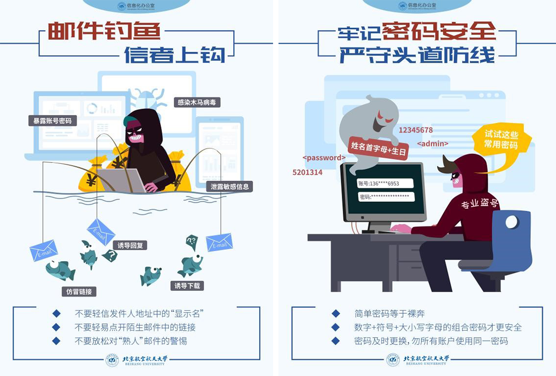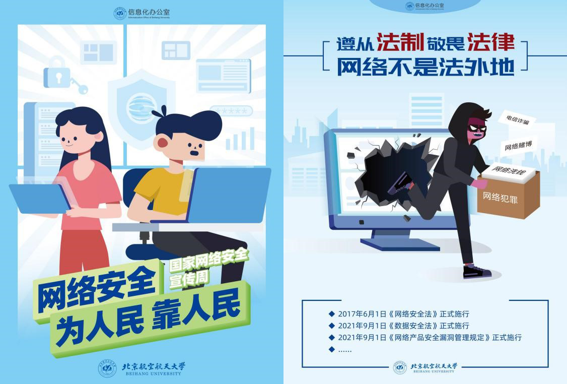 為進(jìn)一步加強(qiáng)網(wǎng)絡(luò)安全工作,嚴(yán)格落實(shí)《中華人民共和國(guó)網(wǎng)絡(luò)安全法》的相關(guān)規(guī)定,切實(shí)做好我校網(wǎng)絡(luò)安全保障,進(jìn)一步提升全校師生的網(wǎng)絡(luò)安全意識(shí)和安全防護(hù)技能,強(qiáng)化網(wǎng)絡(luò)陣地建設(shè),創(chuàng)造安全、穩(wěn)定、健康、和諧的校園學(xué)習(xí)和生活環(huán)境,不斷提高師生的安全意識(shí),增強(qiáng)保護(hù)隱私信息以及辨別相關(guān)信息真假的能力,今年9月5日至9月11日,北航將舉行線上和線下結(jié)合的網(wǎng)絡(luò)安全周宣傳教育活動(dòng)。