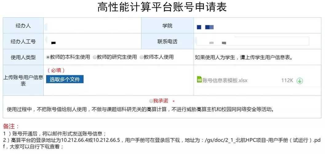 (1)填寫申請表時注意“使用人類型”一欄分為教師、本科生和研究生。