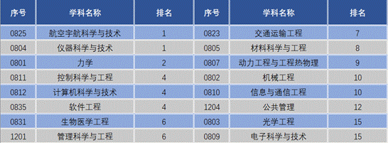 圖:北航部分學科在教育部第三輪全國高校學科評估排名
