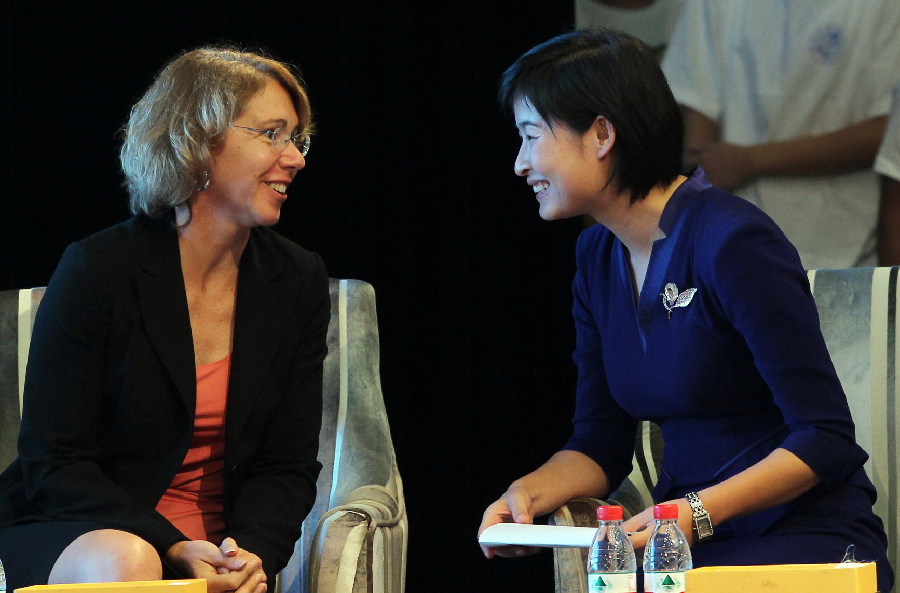 2013年9月,美國參加最后一次航天飛機任務的女航天員桑德拉·馬格努斯與中國首位女航天員劉洋在北航晨興音樂廳同臺交流。這是中美兩國女航天員首次對話