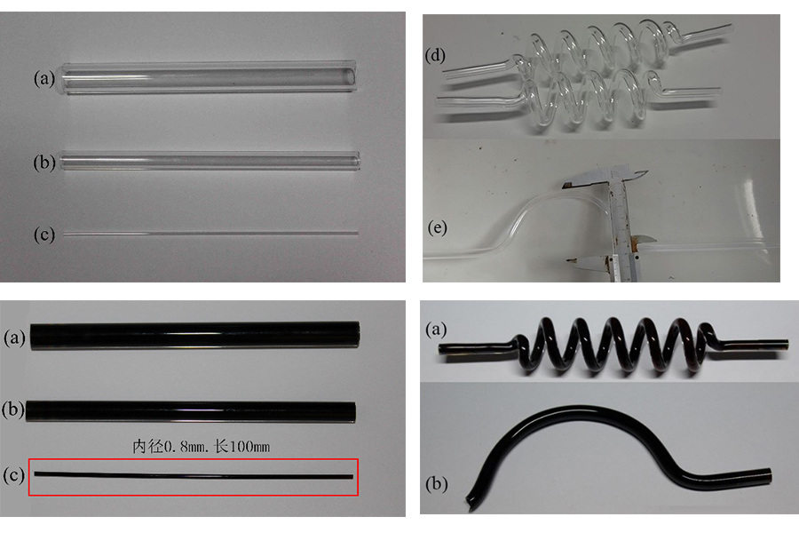 直管和異型石英管內(nèi)壁沉積DLC薄膜前后對(duì)比圖