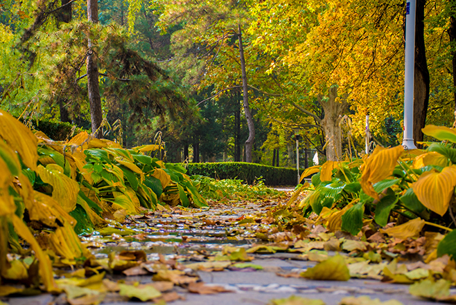 正好落葉紛紛揚(yáng)揚(yáng),層林盡染,漫天蓋地。